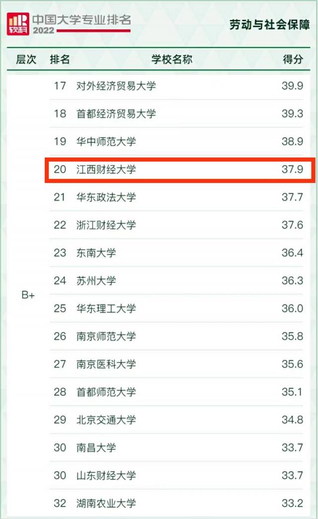 其中,税收学名列第7位(共51所高校上榜),获评“A”等级;财政学、劳动与社会保障分别名列第18位(共48所高校上榜)、第20位(共82所高校上榜),获评“B+”等级;行政管理名列第79位(共178所高校上榜),获评“B”等级。