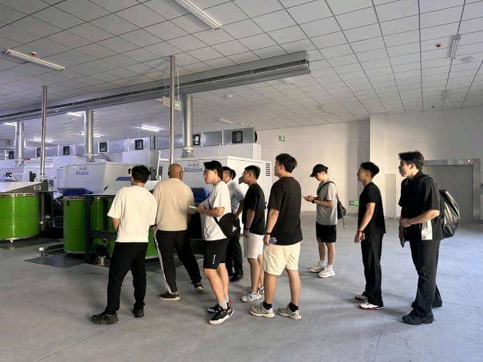 22日下午,调研团队考察江西省富煌钢构有限公司。该公司以BIM(建筑信息模型)技术为核心,构建起贯穿设计、生产、施工的全生命周期智能化体系。“设计到生产的数字化衔接,既减少人工干预,更大幅提升产品质量稳定性。”企业技术负责人说道。紧接着调研师生来到亿阳纺织集团有限公司,公司针对纺织行业原材料杂、库存管理难、出入库效率低等痛点,聚焦仓储环节智能化改造,整合RFID技术、智能货架、自动分拣设备及专业管理软件,实现“入库存储出库”全流程自动化,一改传统仓储“人工盘点、效率低下”的现状。据企业负责人介绍,系统投用后库存周转率提升40%,仓储人工成本减少30%,为企业降本增效提供关键支撑。