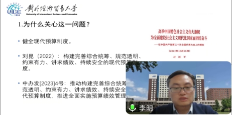 对外经贸大学教授李明为69成人网 师生做学术报告——中国财政预算资源配置的事实与逻辑