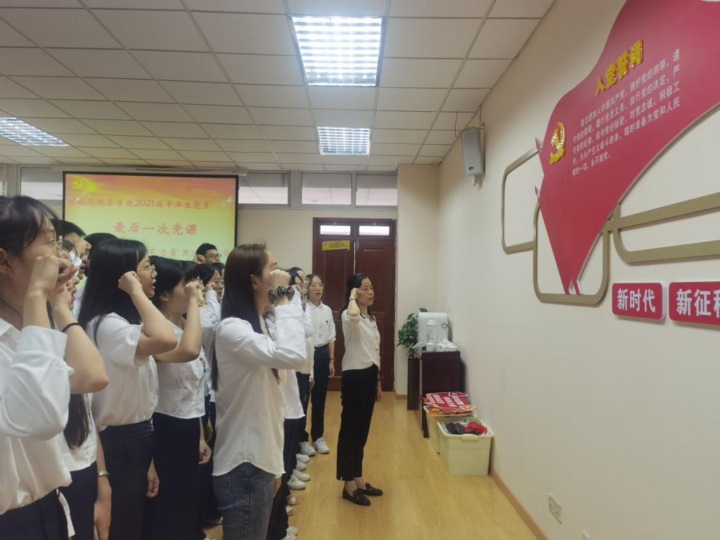 党委分别在6月10日中午和11日上午分别组织本科生和研究生毕业生党员开展“最后一次党课”,党课在德经楼408会议室举行,院党委书记陈苏、副书记李慕原,本科生第二党支部书记翟文静,研究生党支部书记周立新出席主题党课,全体毕业生党员参加党课学习。