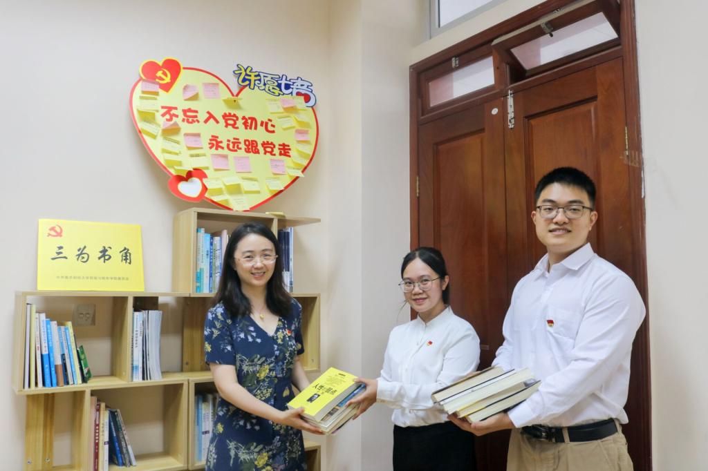 此次党课围绕“四个一”展开,分别为赠送一张政治生日贺卡、回馈一本经典书籍、留下一个暖心祝福、重温一段入党誓词四个环节。在党课过程中,学院党委向每一位毕业生党员赠送了一张政治生日贺卡,贺卡上留下了党支部对党员的衷心祝福和期待;毕业生党员精心挑选了自己的书籍赠送给学院的“支部之家.三为书角”,希望将有为,敢为,能为的精神传递给学弟学妹;毕业生党员们在许愿墙上留下自己对学院和学校的真诚祝福;最后,在支部书记带领下,面对党旗,重温入党誓词。本科生第二党支部正式党员吕佳表示,“党组织给予的关怀让我心生暖意,毕业后,我会更加严于律己,牢记党员身份,严守规矩,树立崇高的道德追求时刻发挥党员的先锋模范作用。”