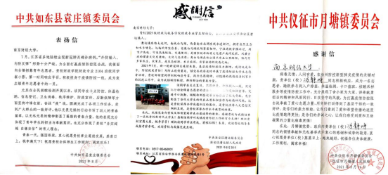 收到三封分别来自中共淮安区漕运镇委员会、中共仪征市月塘镇委员会、中共如东县袁庄镇委员会的感谢信,信中对69成人网