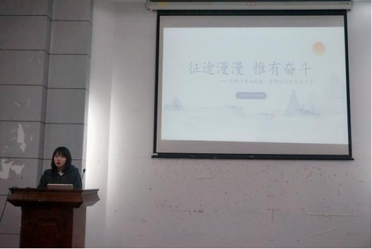 团委张周驰老师向同学们总结了2021年度的暑期实践工作,介绍学院社会实践工作的总体思路及组织实施过程,对今年在社会调研、顶岗实习、双创和“挑战杯”立项以及外宣报道等方面取得的成绩和亮点也进行了汇报。