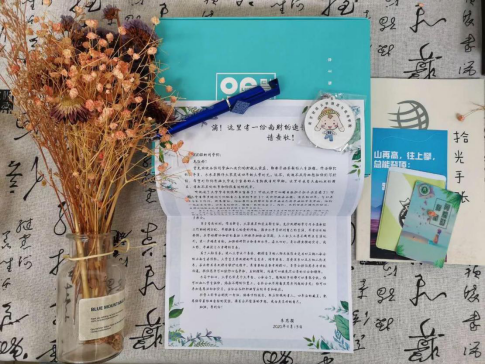 的学长学姐们精心设计的卡套、钥匙扣、书签等文创产品,书签上印着“财政助民生,税收家国情”、“财税学子,砥砺向前”等极具学院特色的财税名句;除此之外,盲盒中还有一封新生辅导员朱思颖老师写给大一新生的一封信,信中写道:“你要悄悄拔尖,然后惊艳所有人!”饱含了对“后浪”们的期待与希冀。