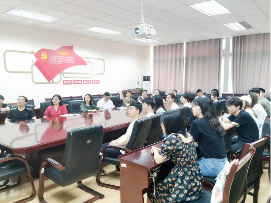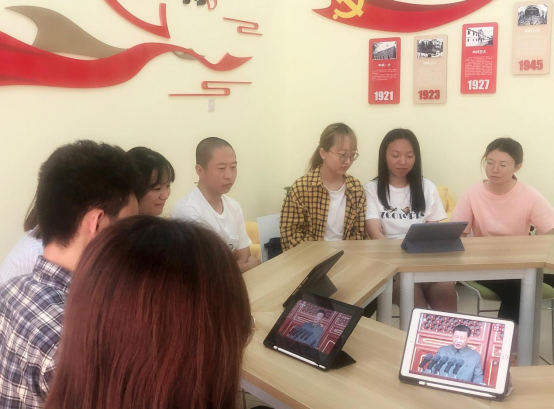 共设置两个分会场,学院领导班子、行政党支部、研究生党支部、本科生第一党支部和教师代表在位于德经楼408会议室的“支部之家·教与学指导中心”观看,本科生第二党支部全体党员在位于中苑6号站的“支部之家·初心小站”观看。