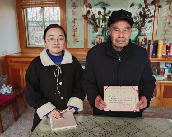 税收2001班入党积极分子闻佩的爷爷闻怀桂老人就是一名光荣的退役军人。闻怀桂今年已经七十又一,但依然有一颗赤子之心。每当回忆起曾经从军的经历,他仿佛又变成了当初那个意气风发的少年。从入伍之初小小的炊事兵到后来持枪纵横战场,他在战场挥洒着自己的热血和青春,在篝火旁的草地上和战友唱一曲怀乡的歌,跳动的火焰映红了他黝黑的侧脸。他对自己的孙女闻佩动情地说:“祖国的未来就靠你们年轻一代了!”