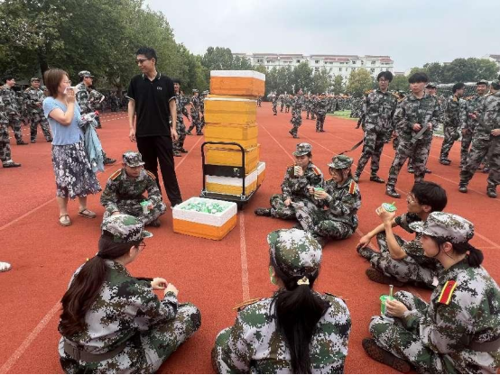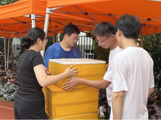 与此同时,南财大一新生和大二同学们正在烈日灼灼下进行军训,学院老师们也来到军训现场为学生们送来了丝丝凉气的绿豆冰沙,在炎热的夏日驱赶着灼人的暑气,和同学们进行一场“双向奔赴”。操场中弥漫着绿豆清香,每一口都是满满的甜蜜和凉爽,仿佛能把所有的疲惫和炎热都一扫而空。在休息时间,同学们无拘无束的坐在草地中,享受着冰凉的绿豆沙,分享彼此的见闻,微风抚走脸上的汗珠,青春的笑颜比骄阳还耀眼。
