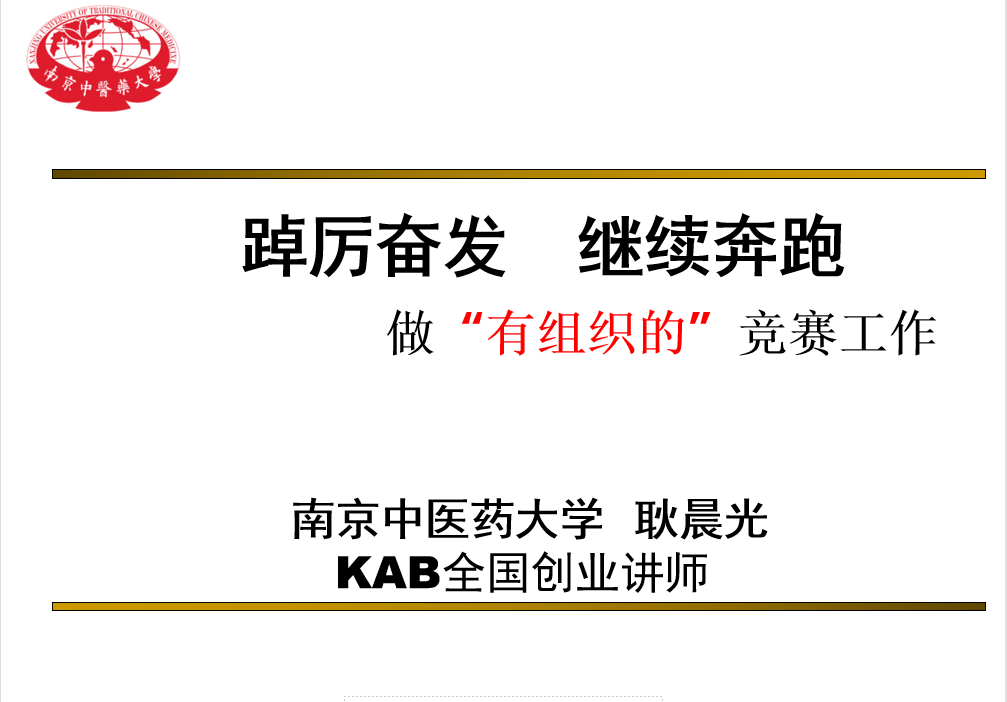5月4日,南京中医药大学团委素拓部部长耿晨光老师围绕“挑战杯”竞赛为我院师生做了题为《踔厉分发,继续奔跑,做“有组织的”竞赛工作》的线上讲座,学院“挑战杯”竞赛指导教师,参与竞赛的学生团队参加了讲座,讲座由学院党委副书记李慕原主持,学院党委书记陈苏致欢迎辞。