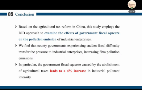师生做了题为《地方政府财政压力与公司污染排放》的线上学术讲座。