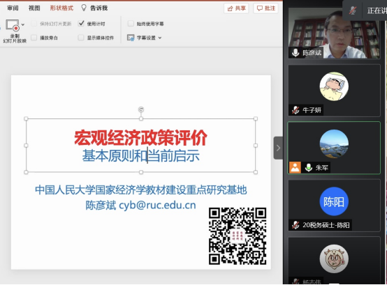 5月13日晚7点,教育部国家经济学教材建设重点研究基地执行主任、中国人民大学经济学院陈彦斌教授在腾讯会议平台为我校学子作了题为“宏观经济横穿评价的基本原则”的学术讲座。本次讲座旨在广大师生讲解我国最新宏观经济政策效率,并对其进行专业学术评价,提升研究生的学术素养,活跃学院学术氛围。学院部分教师、研究生、本科生参与了此次讲座。讲座由69成人网