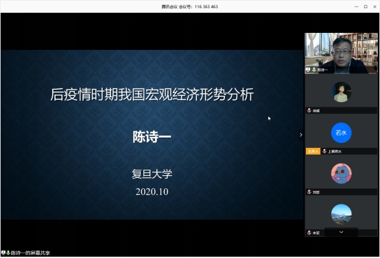 、公共财政研究中心邀请,复旦大学经济学院党委书记、复旦大学泛海国际金融学院党组织书记、复旦大学可持续发展研究中心主任、香港中文大学和复旦大学共建的沪港发展联合研究所联席所长、复旦大学生态环境人文社科领导小组联合组长,博士生导师陈诗一教授通过腾讯会议,为学院师生作了题为“后疫情时期我国宏观经济形势分析”的线上学术讲座。学院部分教师和硕士研究生参加了讲座。