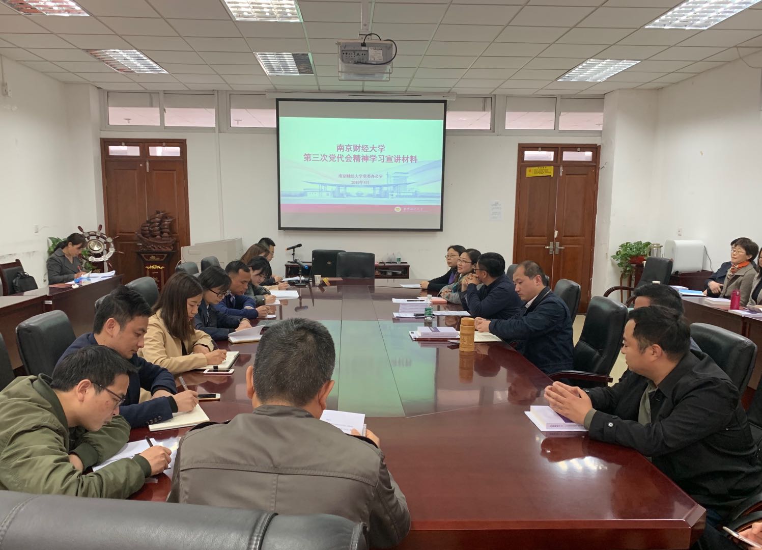 郑锷副主任介绍了学校第三次党代会的概况,并围绕“五年来的工作回顾”“发展目标和思路”“今后五年的主要工作”“全面加强党的建设”等四个方面,结合高等教育的发展脉络和学校的发展进程,对学校第三次党代会报告进行了系统梳理和详细解读。谈到在今后工作中如何贯彻落实校第三次党代会精神时,郑锷副主任表示,要把兴校使命扛在肩上、把师生冷暖装在心中、把责任担当举过头顶,自觉提高精准落实的能力,以真抓实干、雷厉风行、久久为功的拼劲和韧劲,奋力建设特色鲜明的高水平财经大学,为建设“强富美高”新江苏,推动江苏高质量发展走在前列作出新的更大贡献。