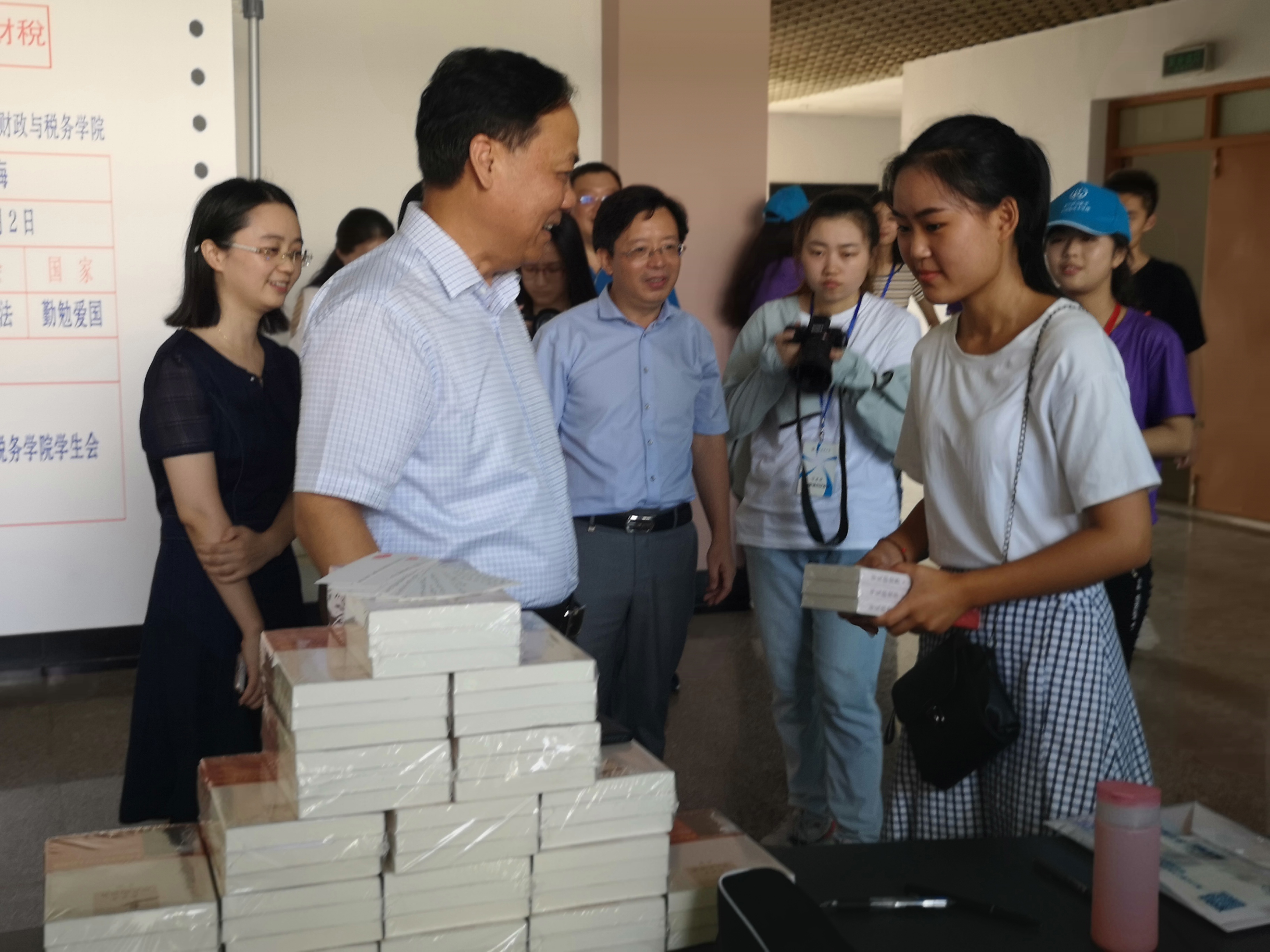 今年为申请绿色通道的家庭经济困难学子赠送书籍《平凡的世界》,我校党委书记陈章龙为学生代表赠书,并鼓励学子美好的生活要靠自己去争取与奋斗。