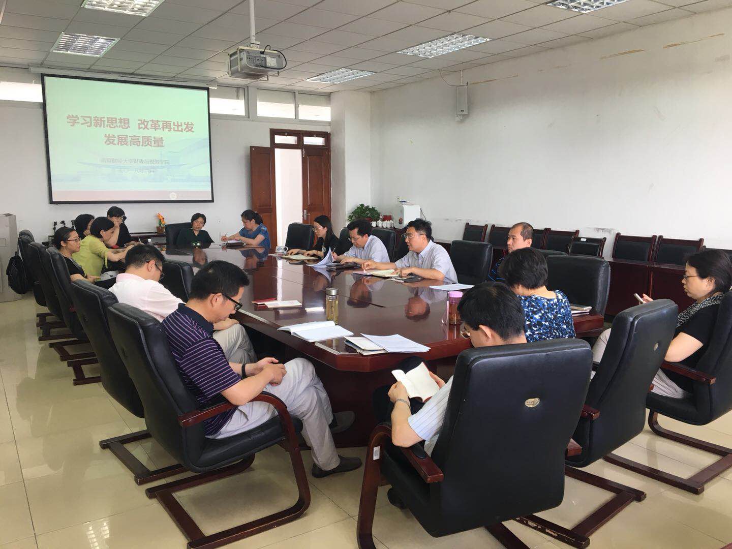 在德经楼408会议室召开“学习新思想 改革再出发 发展高质量”专题学习及大讨论活动,院党委书记陈苏主持会议,学院党委班子全体成员及全体教职工参加会议。