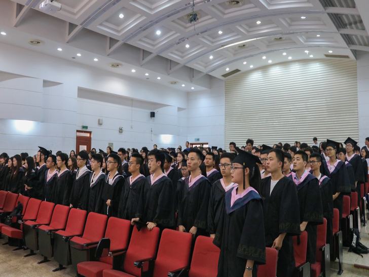 最后,主持人宣布学位授予仪式结束,全体起立,奏唱《南财大之歌》。这一刻,不仅象征着2018届毕业生四年共同的旅程终结,还象征着他们新的人生征途正式起航。