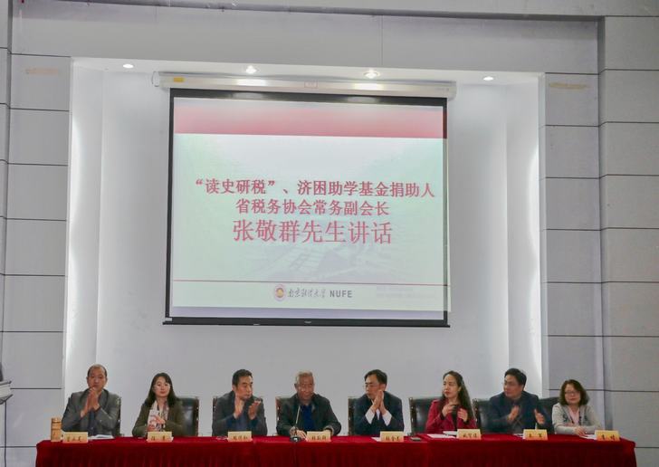 在德经楼双登学术报告厅举办了2017级本科生首次入学教育暨“读史研税,济困助学基金”颁奖仪式。江苏省税务学会常务副会长张敬群、副秘书长端传和、69成人网