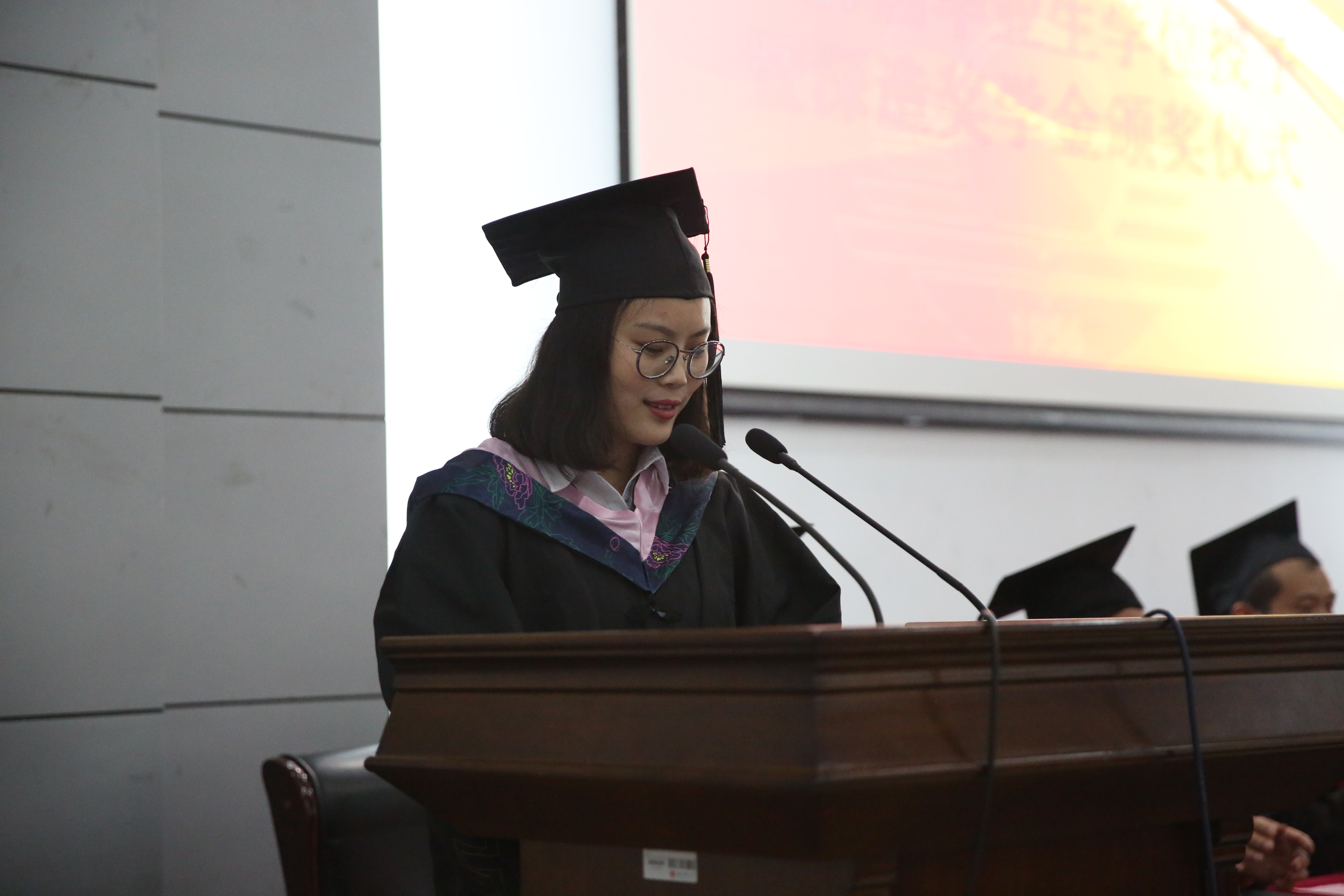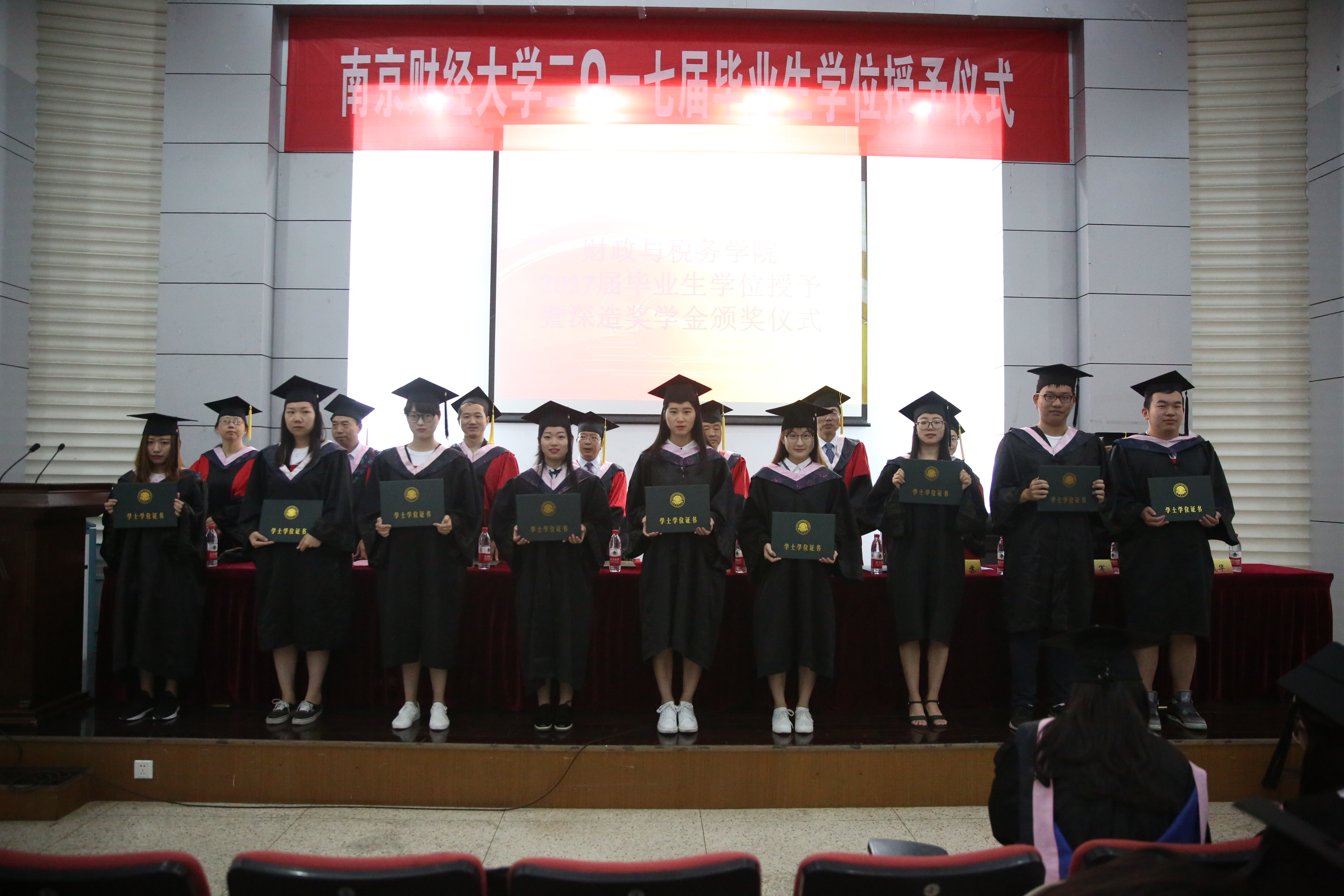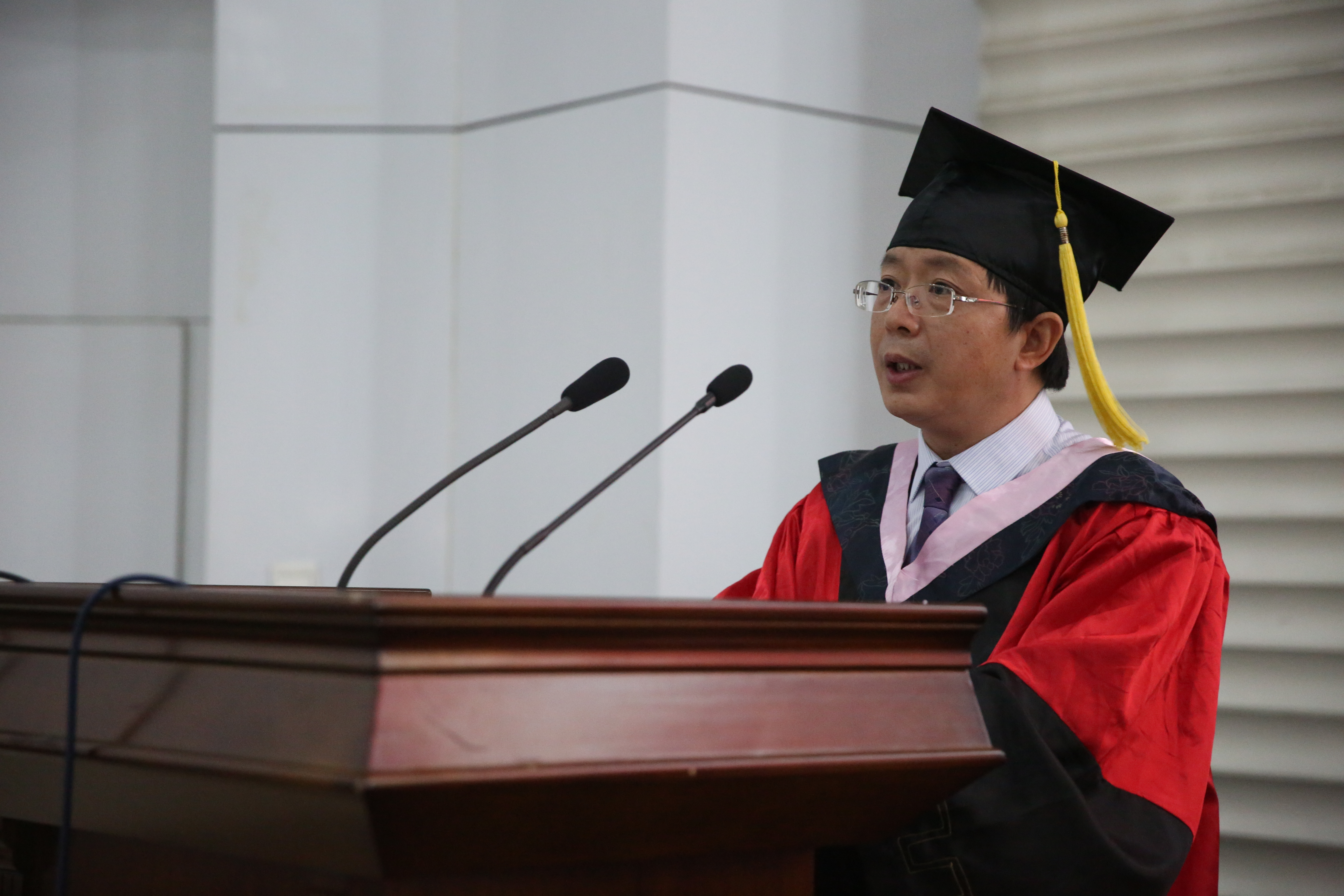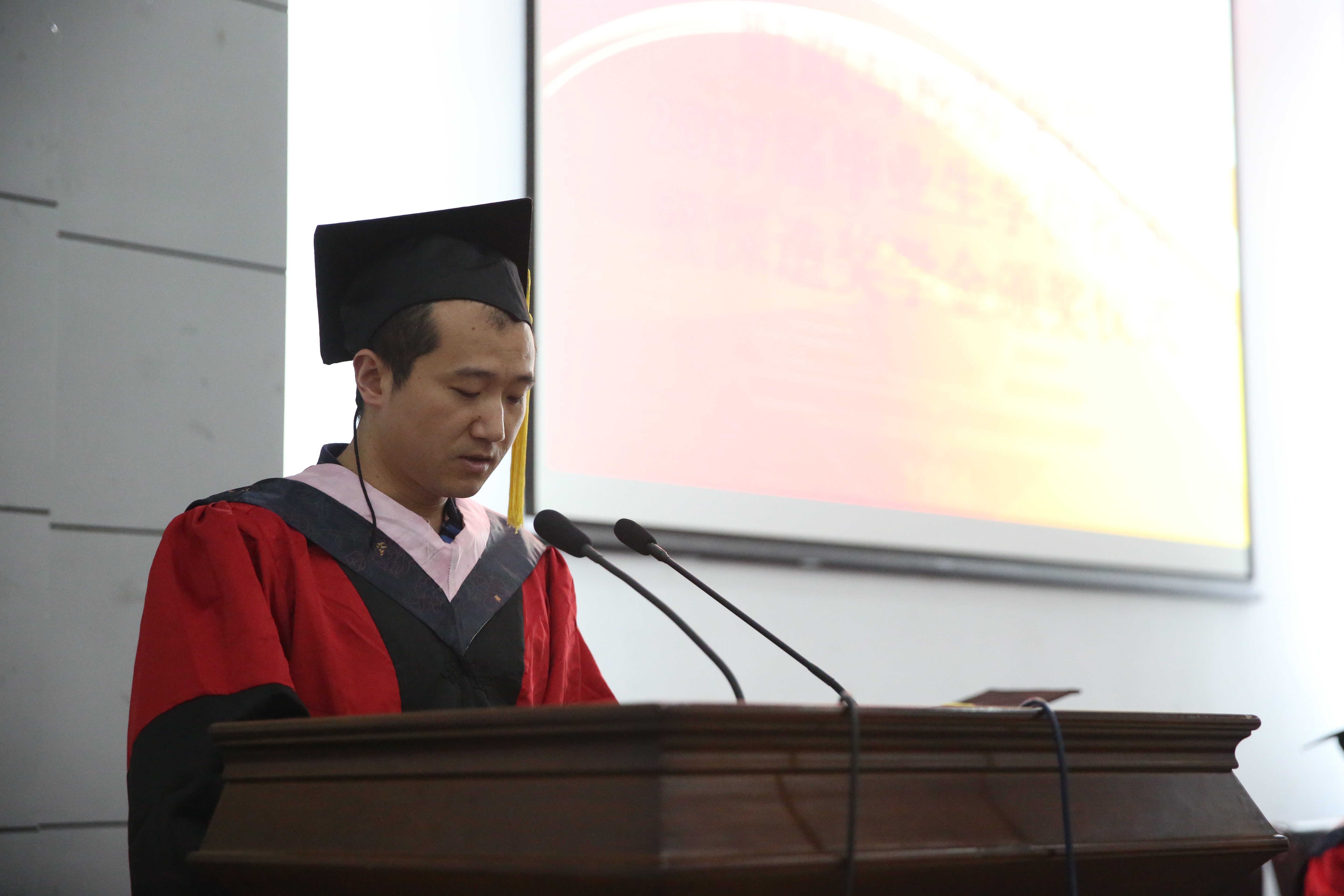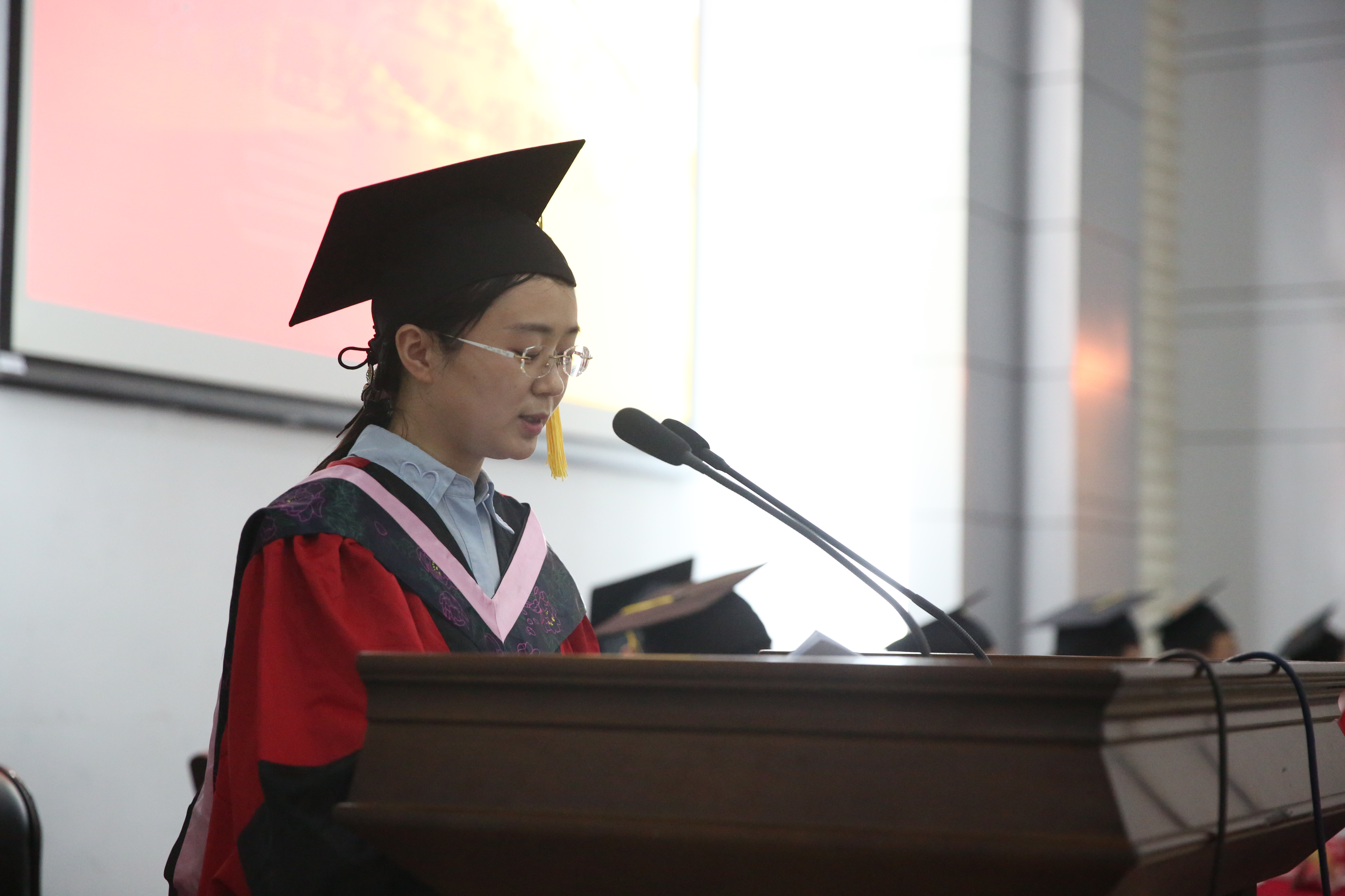 首先,院长李林木教授为毕业生致辞,他希望同学们带着所学知识、母校寄托能够担负起社会责任、历史责任,敬畏头顶的星空和心中的戒律,在新的征程中展翅高飞,实现人生新的跨越。在副院长管永昊宣读完授予学士学位的决定后,同学们身穿学位服,走上前台,校领导及学院领导、教授为他们一一拨过学位帽上的流苏,授予学位证书。接着,优秀毕业生代表沈静同学代表发言,她表达了对母校的感恩,对同窗情的眷恋,同时也表示无论今后身处何处,一定不辜负母校的希望,积极进取,不懈追求,描绘出更加绚丽的人生画卷,为母校争光。