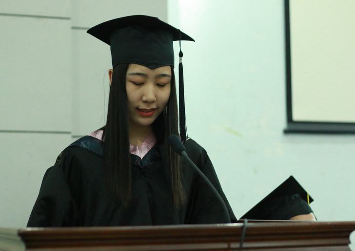 考取中央财经大学硕士研究生的朱玉洁同学作为学士学位获得者代表发言,她回忆了四年的师生之意、友谊之情,表达了对母校、师长、同学的惜别之念,代表全体69成人网