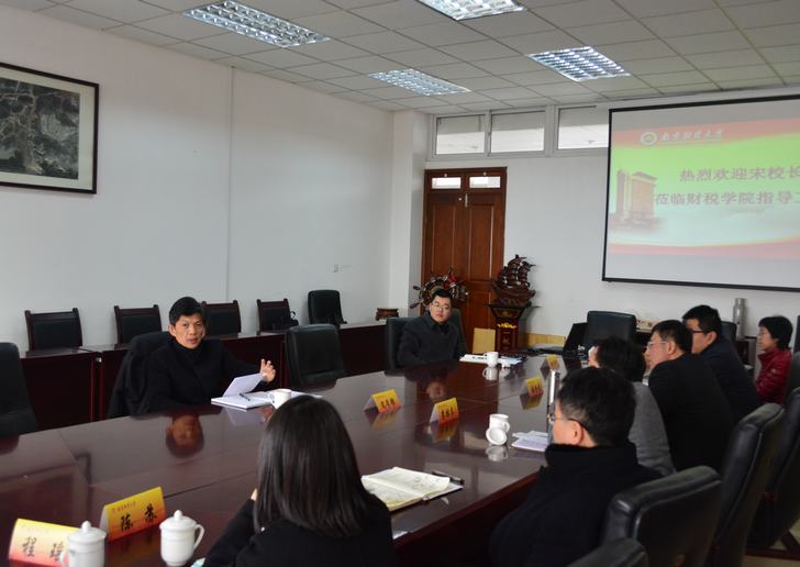 在认真听取汇报后,宋学锋校长讲话。他对学院“十二五”期间取得的成绩和“十三五”规划的定位予以充分肯定,并希望学院进一步强化学科与专业的优势与特色,为建设有特色高水平财经大学发挥重要支撑作用。针对学院下一步工作,宋学锋校长提出五点要求:一是加强学科发展与专业建设。明确人才培养、教学质量改革方向,加大人才培养方案、课程体系设计改革力度,凝练学科方向和亮点。二是加快师资队伍建设。要以“求贤若渴”的精神与态度按需引进人才,正确处理好存量人才与增量人才的关系,充分调动人才积极性,加大对青年博士教师的扶持力度。三是加强科学研究错位发展,培育和发挥比较优势。引导教师立足“问题导向”与“兴趣导向”开展科学研究,打破专业壁垒,着力打造团队聚合效应。四是提升社会服务质量与层次,增强服务地方经济社会的能力。将社会服务与人才培养、科学研究有机结合,最大限度地实现社会效益与经济效益。五是探索国际化合作办学的新模式。从教材使用、教学方法创新、师生交流与人才引进等方面积极探索尝试。最后,宋学锋校长希望学院全体教职员工团结协作,开拓进取,推动学院各项工作迈上新的台阶。