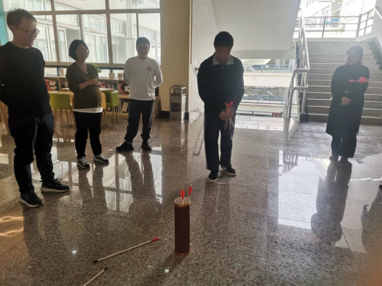 分工会根据原定工作计划,在学院东侧过道大厅举行了一场投壶比赛活动。投壶是我国古代一项兼具礼仪教化与休闲娱乐的社会文化活动,至今已有数千年历史,该项比赛看似简单易操作,实际上需要较强的投射技巧以及心平气和的心态。