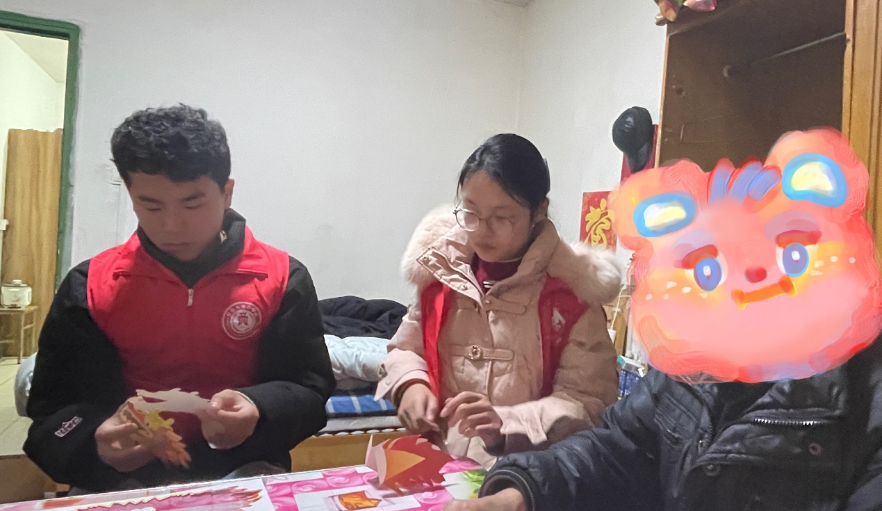 学雷锋纪念日前夕,大学生们来到了五福家园住宅小区,登门拜访吴老爷爷,由于年岁已高,吴爷爷不久前住院治疗了一段时间、刚刚顺利出院,身体尚未完全恢复,但看到志愿者们前来上门拜访,吴爷爷还是由衷地感到开心并热情地招呼同学们不要拘束。此次前来,不仅为吴爷爷带来了牛奶、水果、桃酥、枣泥饼等慰问品,志愿者们还在社区老师的带领下,陪同老人家完成了“舞龙”的小手工。吴爷爷还与志愿者们热情交谈,分享了自己年轻时候的经历以及生活近况等。吴爷爷长期独居生活,因此每次志愿者们上门拜访,都为这间往日清冷的屋子增添了许多欢声笑语。与吴爷爷告别时,老人也紧紧握住志愿者们的手,表达了对来看望他的同学们的感谢并且由衷地欢迎同学们常来看望他。