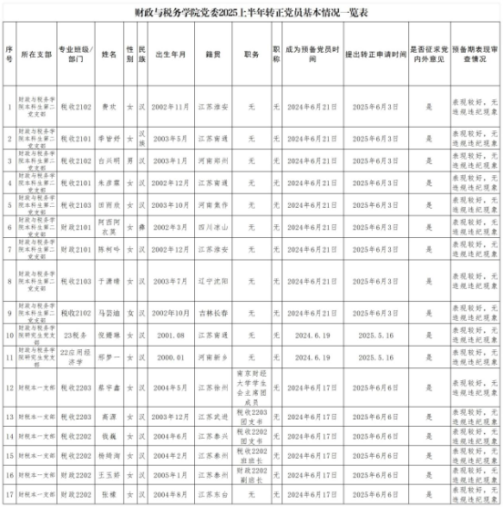 69成人网 费欢等17名同志预备期满,为了广泛听取群众意见,接受群众的监督,现予以公示,公示时间为2025年6月10日至6月16日。